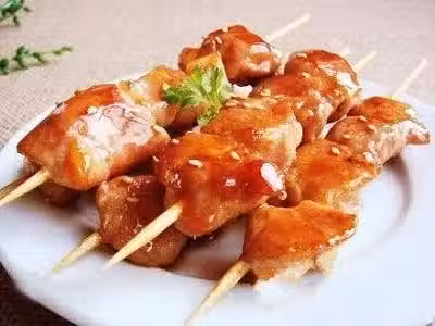 5. 平底鍋倒食用油,熱鍋調至小火,肉串攤鍋中。