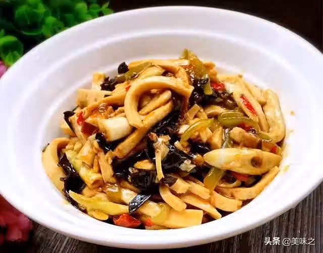 1、千葉豆腐切絲,黑木耳提前浸泡好切成絲,萵筍切絲,春筍切絲。