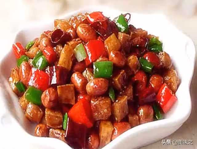3、過油後的花生仁和豆腐丁。
