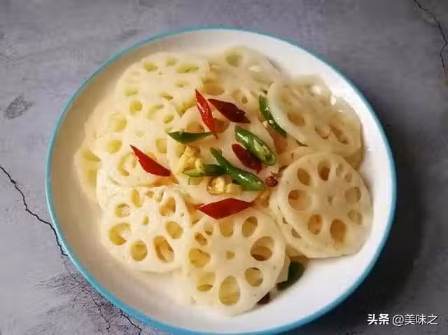 蓮藕、玉米油、鹽、米醋、雞精、薑末、花椒、干紅辣椒、