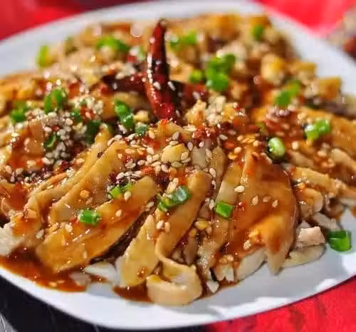 材料:雞腿2粒,蔥適量,鹽適量,芝麻油適量,芝麻1小匙,紅油2小匙,少許糖,小勺胡椒油,少許味,少許醋,少許醬油。羅斯。