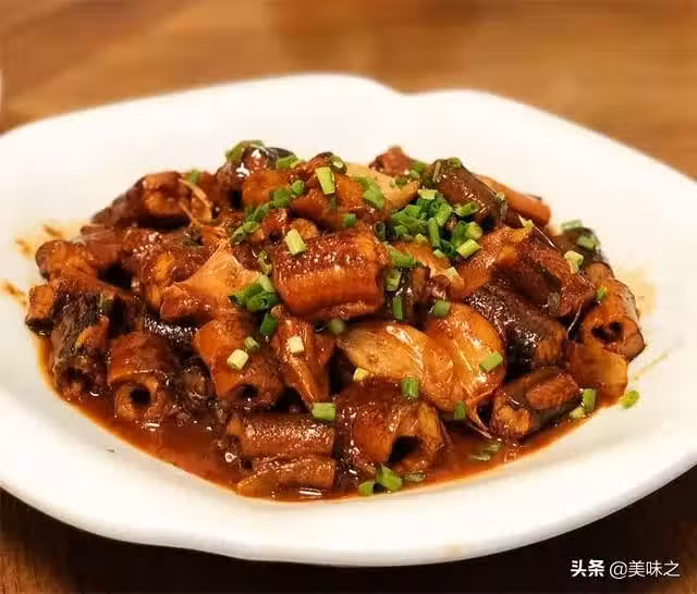 9、黃鱔酥爛轉大火收汁,撒上蔥花出鍋裝盤。