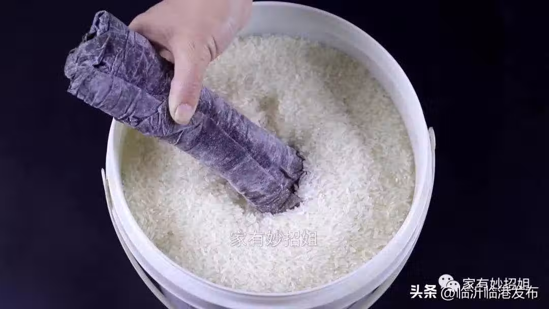 不過這個海帶放上個把星期的樣子,就要拿出來曬一曬,不然海帶吸收水分變潮,就起不到預防大米生蟲的作用了。我們把它曬乾後,還可以繼續放回大米里。