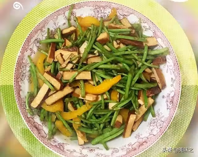 蘆蒿、甜椒、香乾、油、鹽、生抽。