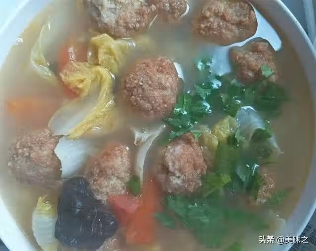 6、水費以後倒入炸好的丸子,轉中火熬制。