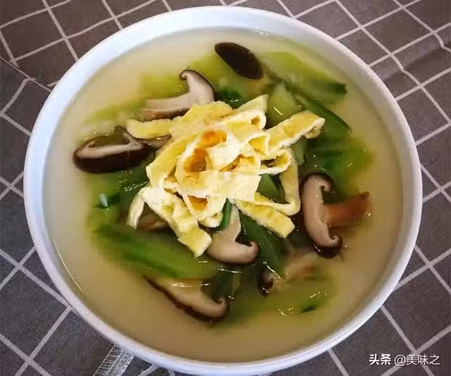 5、水開後放入薑絲,香菇,絲瓜,煮3分鐘,放鹽調味,即可。