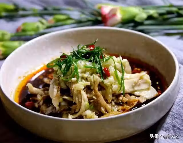 雞腿4個、薑片5片、草果2顆、花椒小搓、香葉5片、八角1顆、小蔥3-4根、料酒適量、鹽適量、生抽適量、辣椒油適量、雞精適量、黑醋適量、白糖適量、香油適量、淋油蒜米適量、干辣椒段適量、蔥絲適量、蒜蓉適量、油適量。