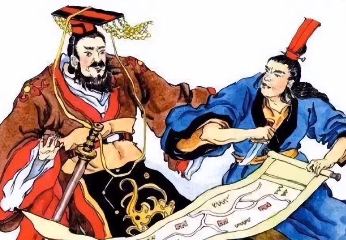 這樣一來,荊軻拿的只是短短的藏在地圖裡的匕首,而秦王拿的是將近一米長的寶劍,古人講兵器「一寸長、一寸強」,拿著短匕首的荊軻哪裡還會是秦王的對手,被秦王砍倒在地。