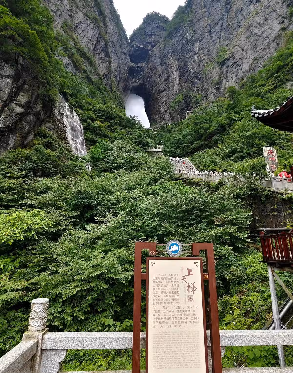 「上天梯」連接通天大道和天門洞的階梯,共999級,寓意至高無上和天長地久,全段坡度五緩四陡,扣合九九之意,譬喻人生之路起伏跌宕,歷經坎坷之後方可成器之理。走在999級台階上,轉身四處即是美景!