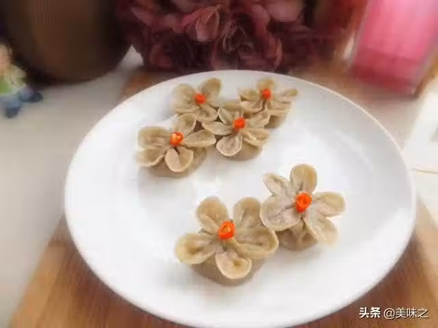 7、中間捏緊,再把開始折起了的5個邊邊翻起來,逐一做好。