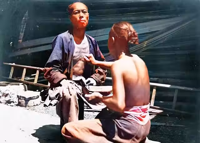 在一個建築工地上,一名工人突然感到身體不適。這名工人知道一些民間療法。他采了一些草藥,把它們壓碎在碗里。底層民眾沒有錢去診所看病,民間偏方是使用時間最長的治療方法。