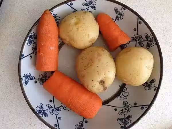 胡蘿蔔和土豆洗凈,隔水蒸至少半小時,至完全酥爛。