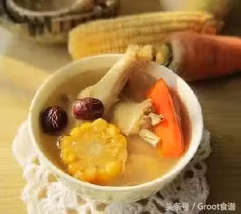 原料:胡蘿蔔、玉米、雞(老母雞)、紅棗、生薑片、花椒,鹽
