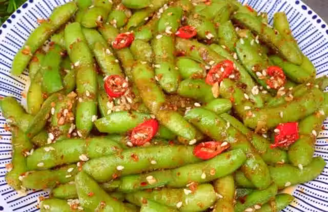 (4)將調好的料汁淋在毛豆上,拌均勻即可開吃了,好吃開胃又下飯老少皆宜!