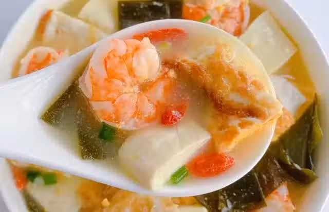 2、蝦仁豆腐海帶湯的做法: