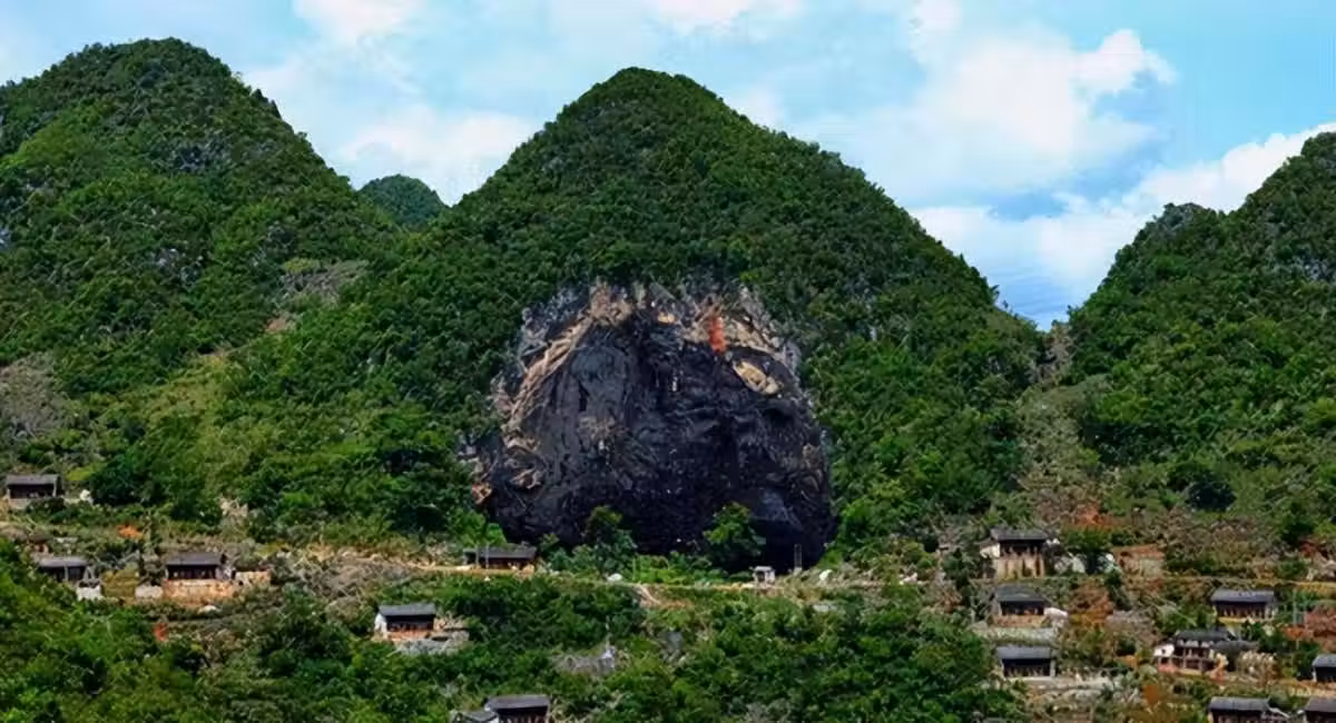 在經過了一段時間的修建後,幾家人的房子就修好了,整整齊齊地坐落在半山腰的溶洞裡。