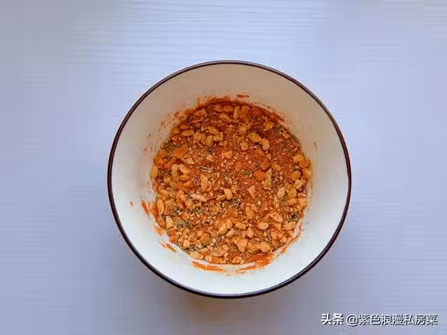 熟花生碎一勺,熟白芝麻一勺,孜然粉一勺,孜然顆粒一勺,辣椒粉一勺拌勻。