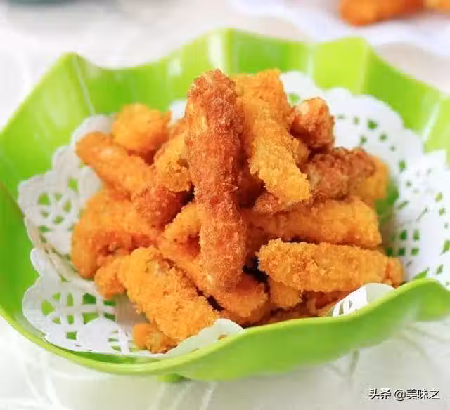 8、大火燒開油,下南瓜條復炸一次撈起瀝油即可。