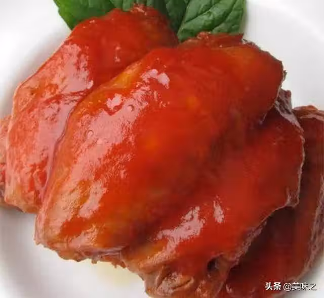 10、將燒好的雞翅層盤, 擺好後再將番茄汁淋上一些。