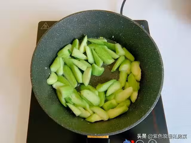 4.鍋中再放少許油,放蔥花爆香,放絲瓜翻炒。