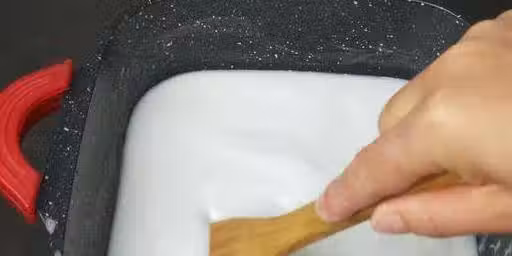 第四步、用一個鍋,裡面裝800毫升的清水,加入80克糯米粉,攪拌均勻,用中火熬一下,注意攪拌不要糊了,等到有大的氣泡的時候,關火,讓它自然涼!