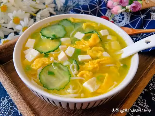前天跟朋友們分享了我的低脂飽腹早餐,今天給朋友們分享我最近一直在喝的湯:黃瓜豆腐蛋湯,黃瓜是大家公認的低能量食物,它含有豐富的維生素和膳食纖維,口感清爽,很多瘦身的朋友們把它當作主食,增加飽腹感,減少其他食物的攝入,以達到減肥的目的。