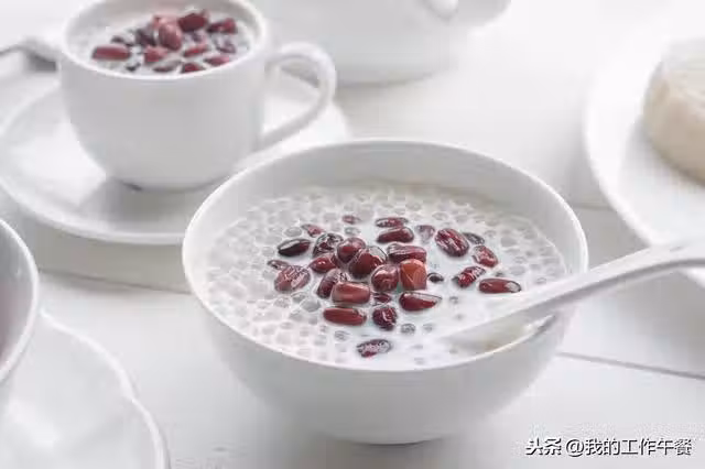 食材:西米適量、紅豆適量、椰奶適量、白糖適量
