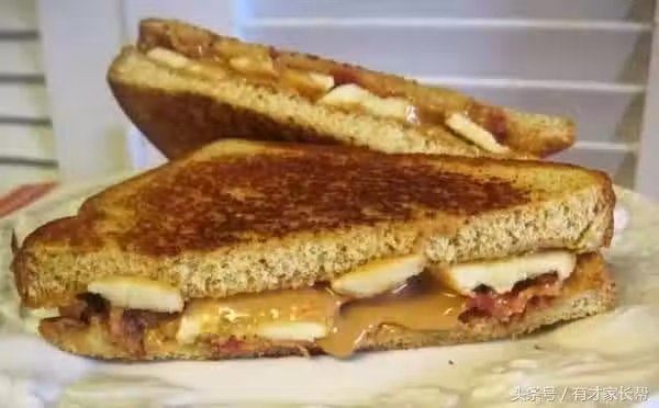 5、把另一塊麵包(有醬的一面)放到香蕉上面即可。