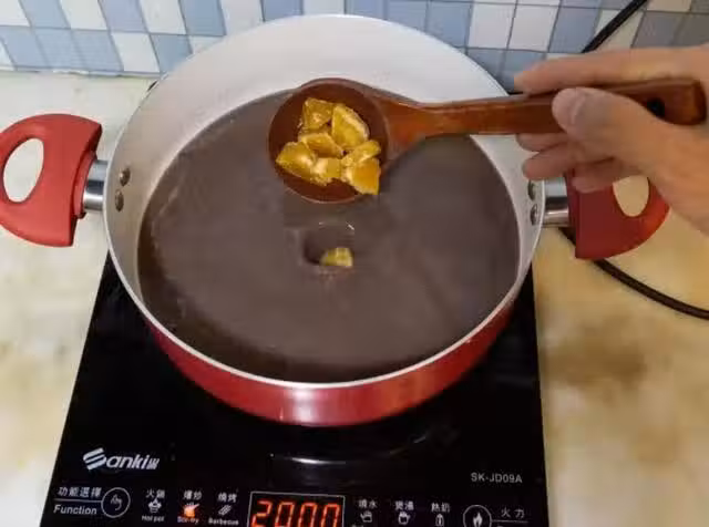 最後,加入黃糖,把豆沙重新煮沸就大功告成。