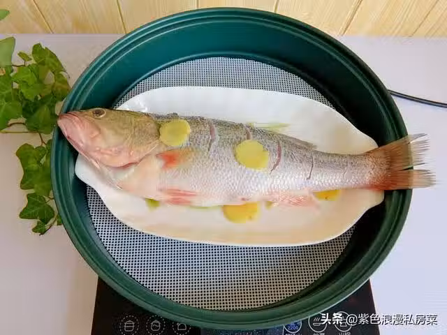 3.鍋中放清水,水開後放鱸魚,大火蒸8分鐘左右,蒸魚的時間根據魚的大小,500g以下的魚蒸5-6分鐘,500g以上的魚蒸8-10分鐘,我的這條鱸魚剛好一斤,蒸了8分鐘。