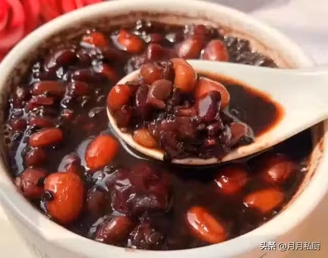 食材準備:黑米,黑豆,黑芝麻、紅皮花生米、紅豆、紅棗、紅糖
