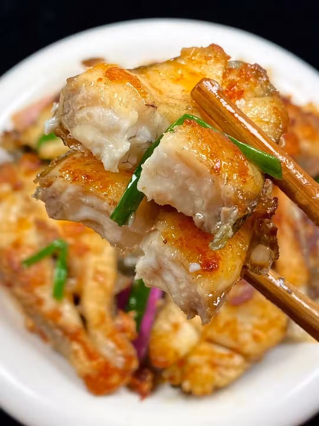 有幸在親戚家吃過一回,被驚艷到了!|||姜蔥煎鱸魚🐟好好吃啊!外焦里嫩,肉質鮮嫩又帶有焦香的口感!太下飯了,吃上一口太香了!哈哈😄-盤都不過吃,大人小孩搶著吃!