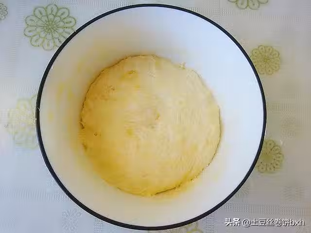 4、大約40分鐘,麵糰漲發兩倍大。
