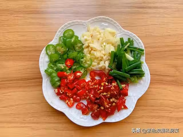 3.準備佐料,青紅椒切圈,干辣椒切碎,大蒜切碎,香蔥切段。