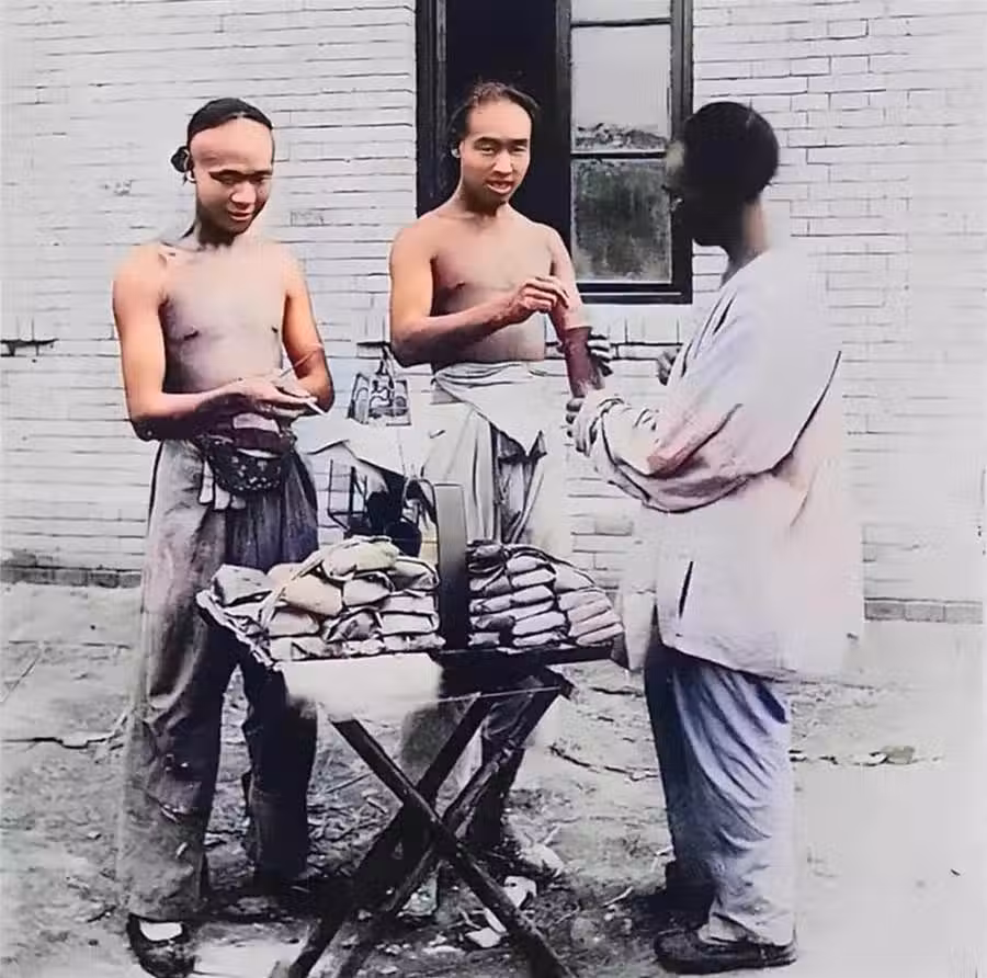 晚清老照片:修腳匠埋頭苦幹,七個人睡一張床,通房小妾相貌平平