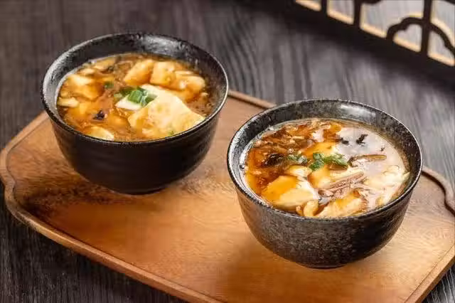用到:黃豆100g、內酯3g、清水1000ml、榨菜絲、香菜、雞蛋、木耳、蚝油、辣椒油、食用油