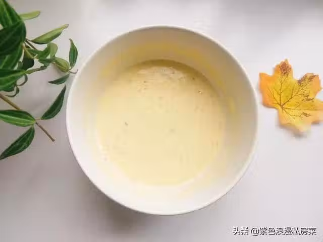 4.調一個麵糊,碗中打入一個雞蛋,放三勺麵粉,三勺玉米澱粉,放適量的清水,攪拌成不幹不稀的麵糊,使麵糊能掛住糊為準。