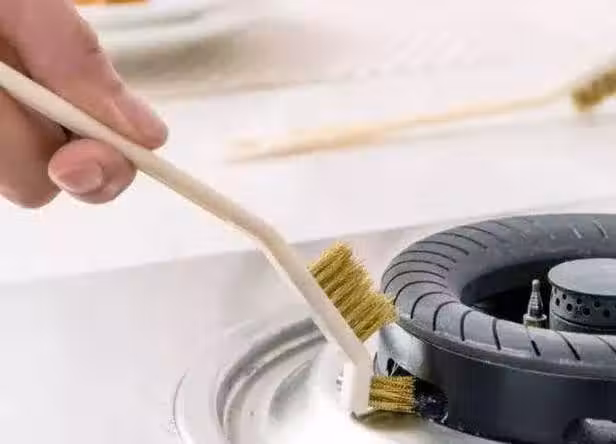 先將牙膏抹在煤氣灶的污漬上,用抹布、鋼絲刷或者海綿刷塗勻、擦洗,擦乾凈後再用蠟燭輕輕的塗抹在煤氣灶縫隙處,污漬就這樣不見了,光滑的外表像是新買的一樣!