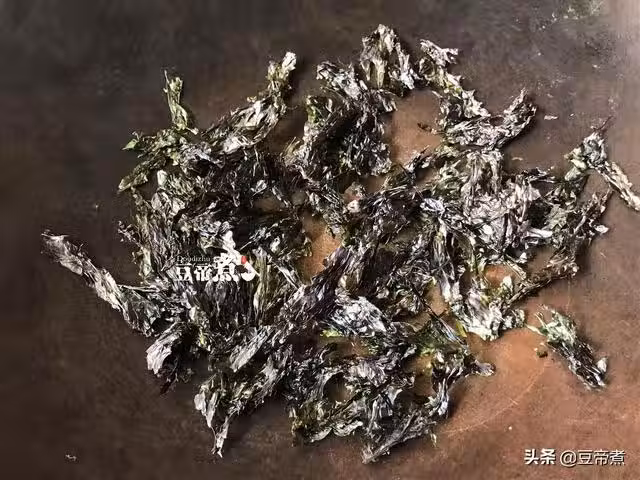 3、在食材都準備好之後就可以開始烹炒了,干鍋倒入紫菜碎稍微炒一會盛出備用。這裡要注意的是「干鍋」不放油,別倒入油炒了。