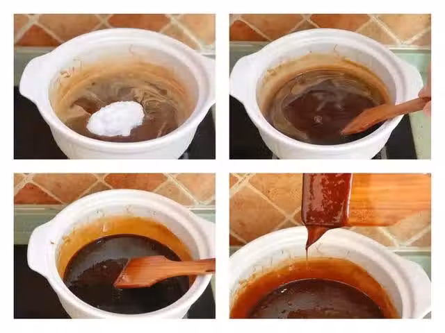 這裡需要注意的是,阿膠冷卻後很容易變得更稠,攪拌起來就比較費勁了,所以需要保持微小火狀態進行攪拌,如果害怕糊鍋的話,也可以將火關掉,放入材料後及時翻拌均勻即可。