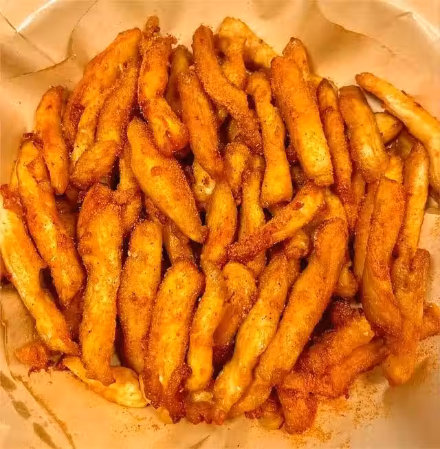 步驟三:最後再復炸一次會更香,撒上椒鹽就可以開吃了。