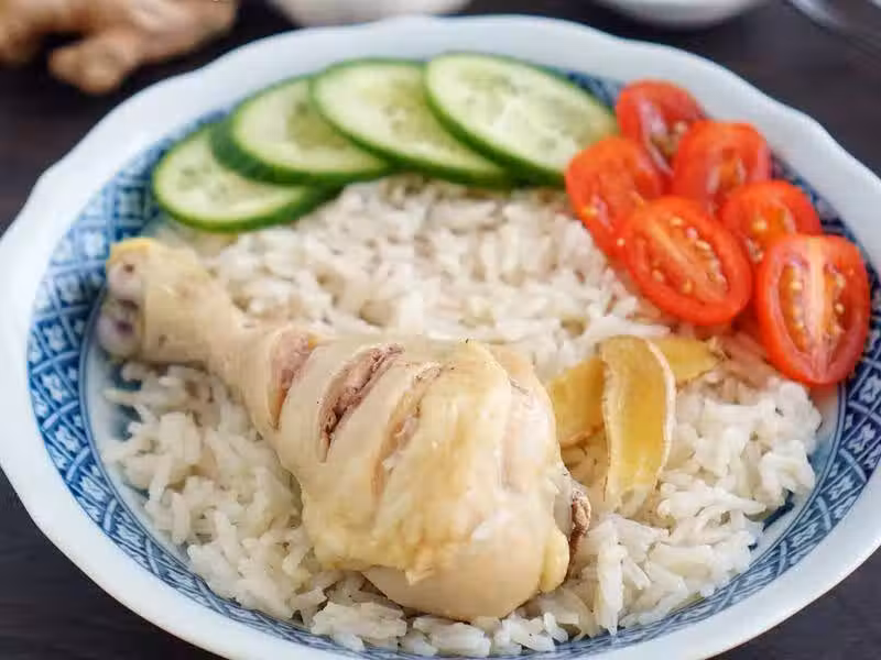 材料: 雞腿/thigh (4塊)(可去皮) 8-10瓣蒜瓣(切碎)或1/3杯蒜蓉 2-3隻紅蔥(切碎) Optional 1 tsp + 1/2 tsp鹽 5 -6片薑片 1/2 tsp麻油 2 cup白米(洗淨備用) 2 1/2 cup水