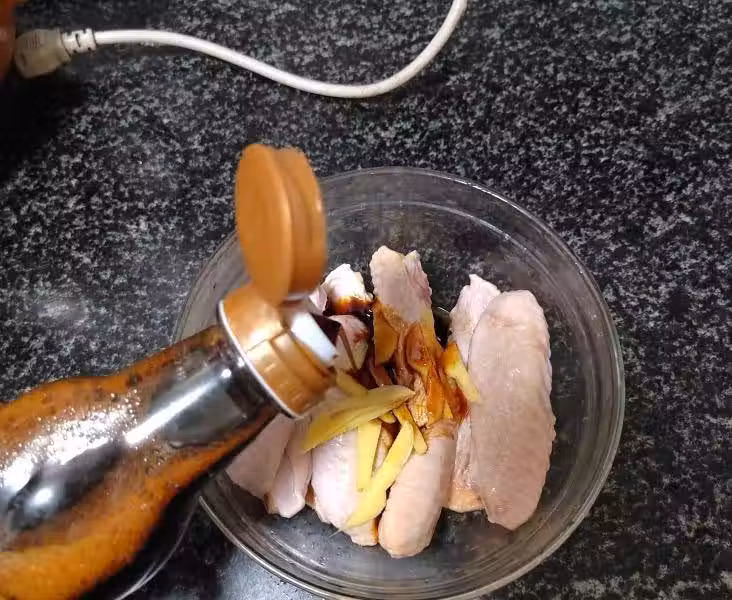 腌料拌勻雞翅,腌制1-2個小時 (如果急著吃在雞翅上劃花刀,腌15分鐘)