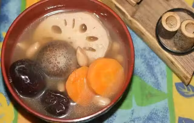 藕1節,胡蘿蔔1根,香菇,花生,紅棗,姜3-4片,鹽