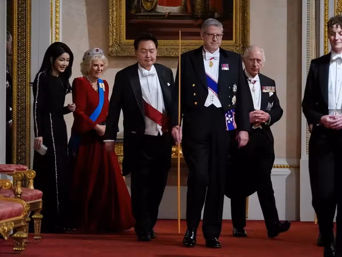 韓國第一夫人在英國的訪問還在繼續,而這次的歡迎儀式和國宴,應該算是最為隆重的場合了,金建希都輸了。
