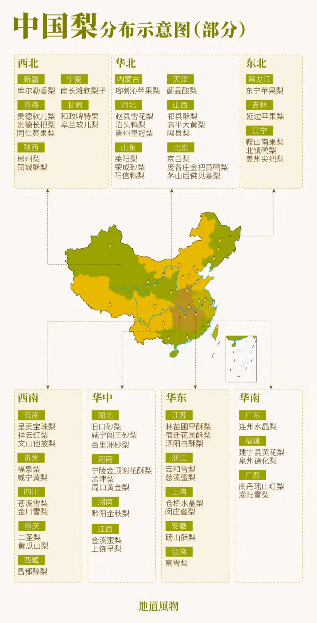 中國西北地區的原生梨,還曾隨著絲綢之路傳到世界各地,至今印度的部分地區還把梨叫作「至那羅閣弗咀邏」,意為「漢王子」。