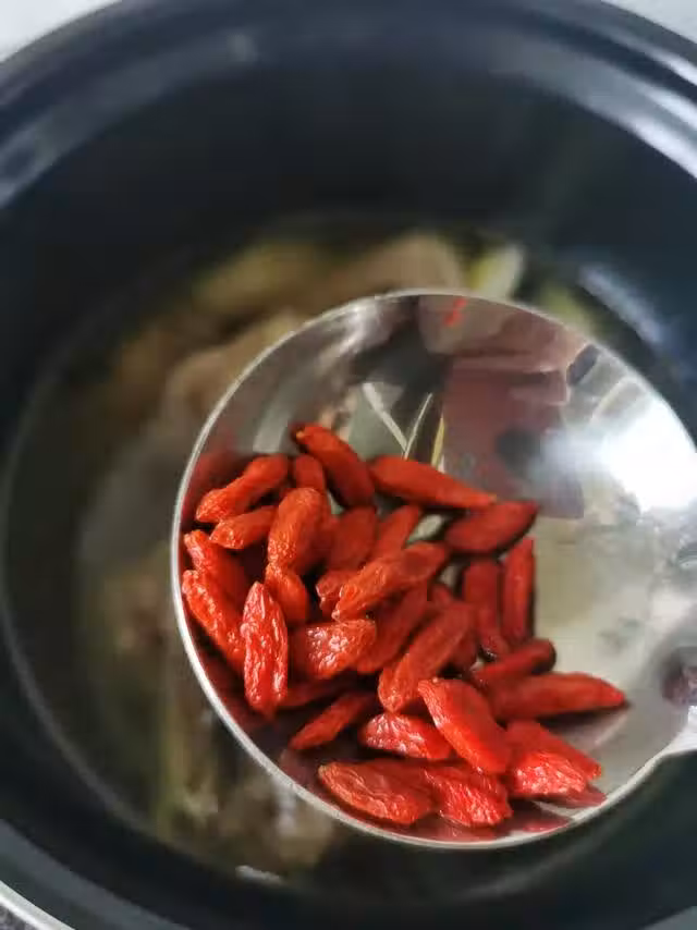 10.時間到了之後掀開鍋蓋放入適量的枸杞。