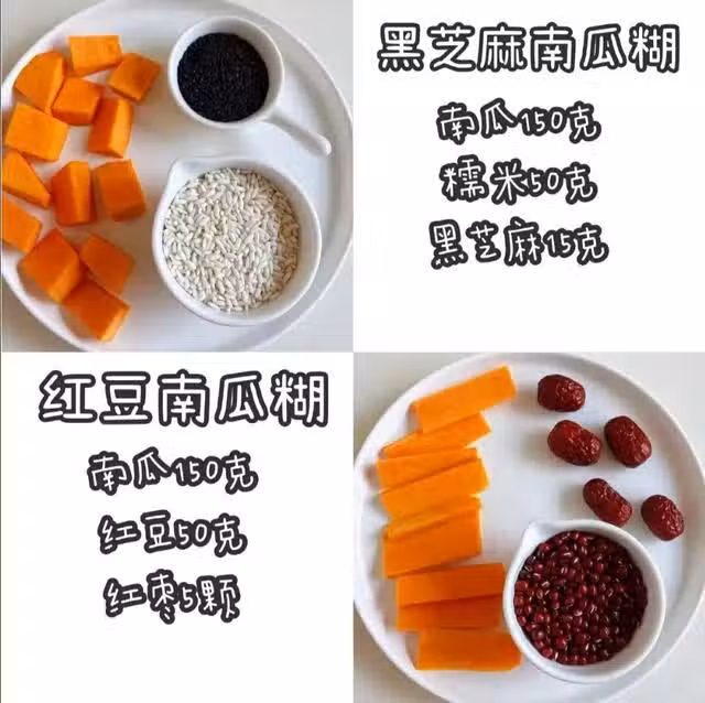 南瓜150克;糯米50克;黑芝麻15克;純凈水600;