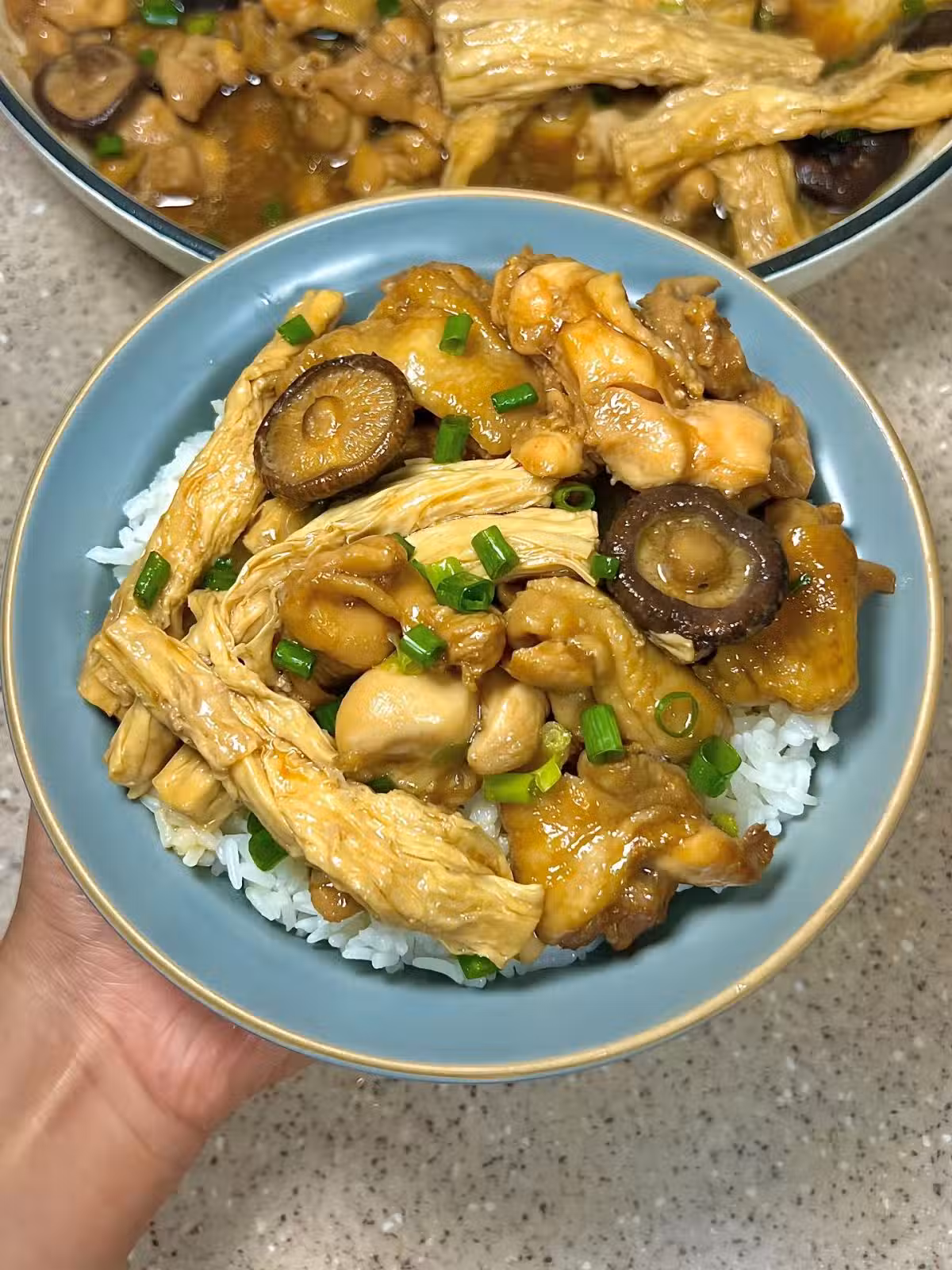 腐竹吸滿了湯汁,雞肉很入味又鮮又嫩~整個菜就是鮮美下飯,太好吃了!我真的百吃不膩👍而且怕胖的姐妹這個菜只要去掉雞皮也能放心吃哦~
