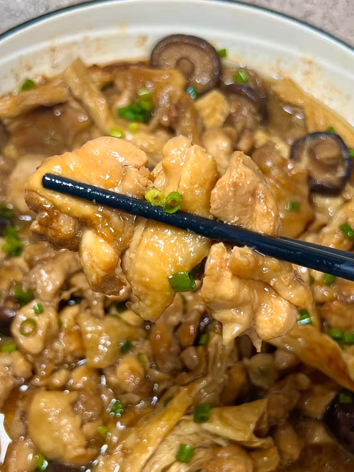 腐竹吸滿了湯汁,雞肉很入味又鮮又嫩~整個菜就是鮮美下飯,太好吃了!我真的百吃不膩👍而且怕胖的姐妹這個菜只要去掉雞皮也能放心吃哦~